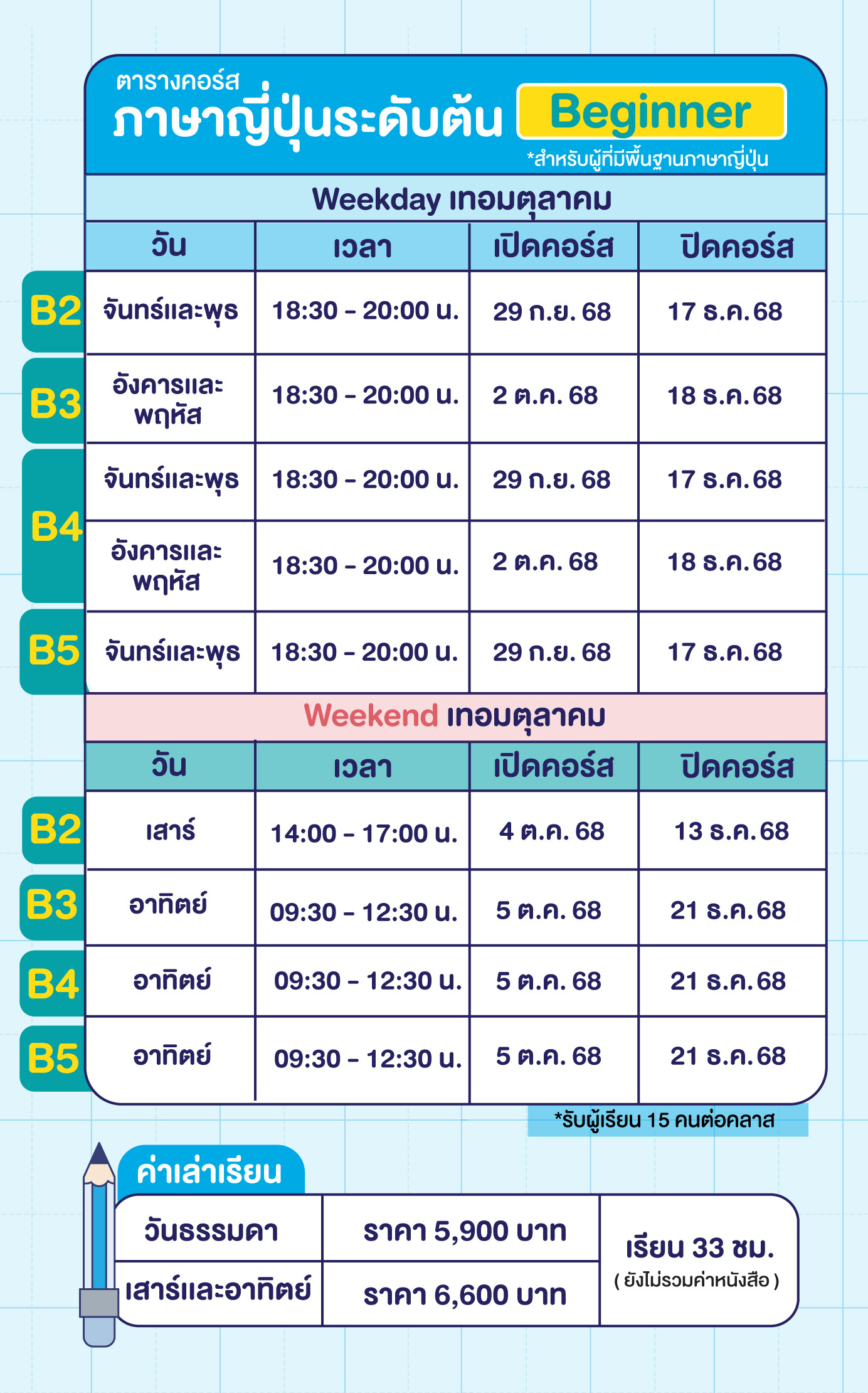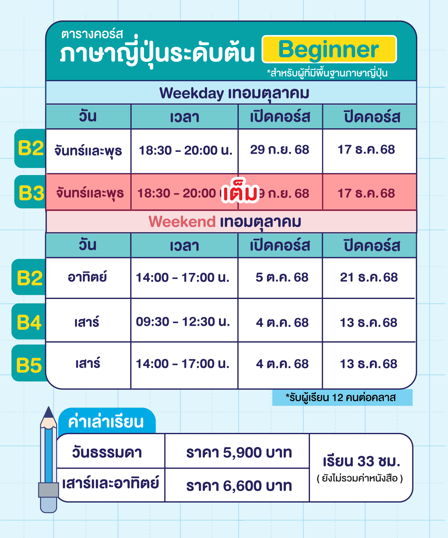 เรียนสัปดาห์ละ 3 ชั่วโมง - 3 ชั่วโมงครึ่ง แบบไม่หักโหม